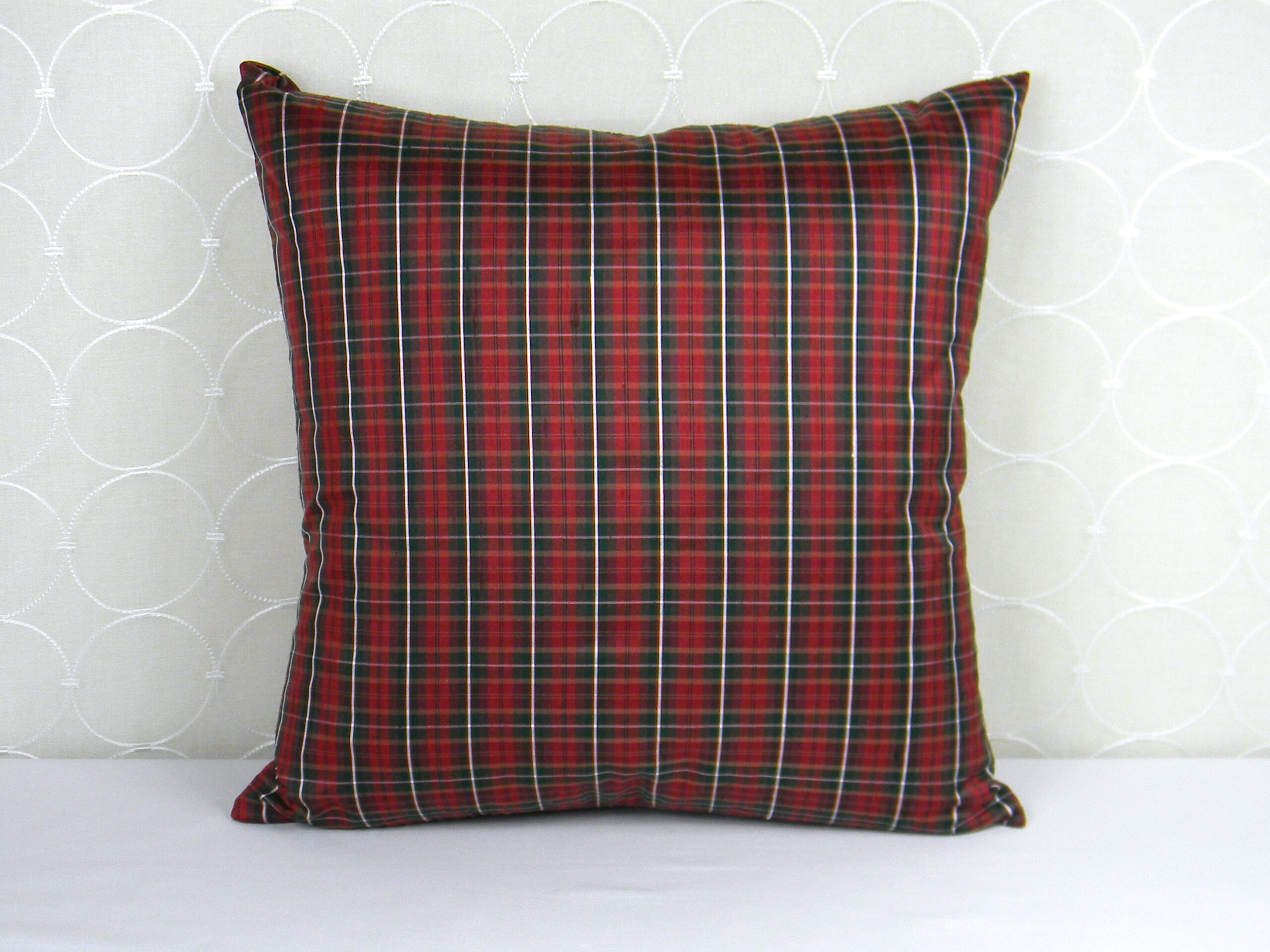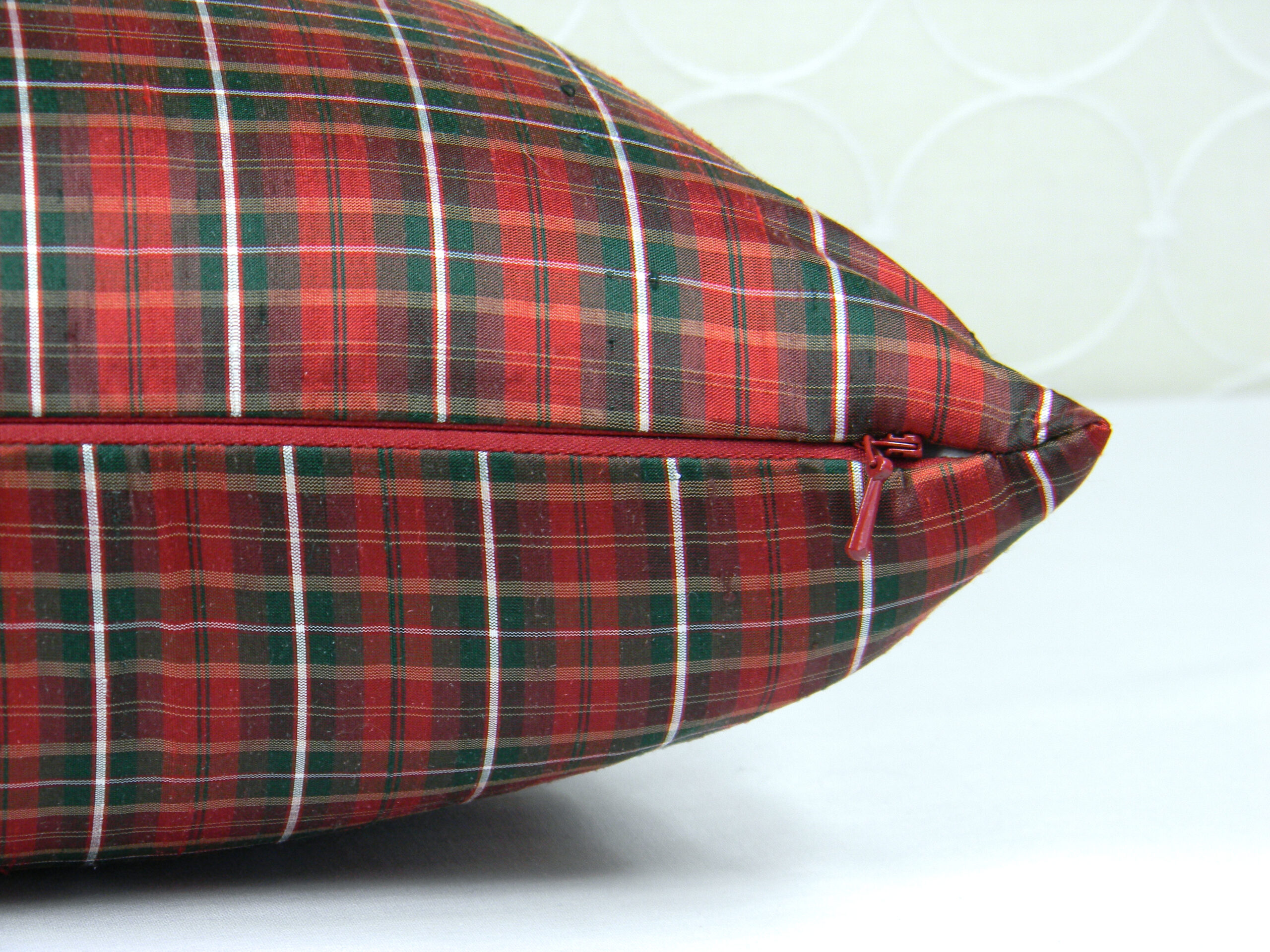 This 100% dupioni silk pillow was made with limited top quality fabric. The silk used in this design has been selected from exclusive collections through custom designers. Each pillow is hand made using advanced techniques, and built using invisible zippers and quality thread. Each custom pillow looks beautiful on a bed or sofa for accent.